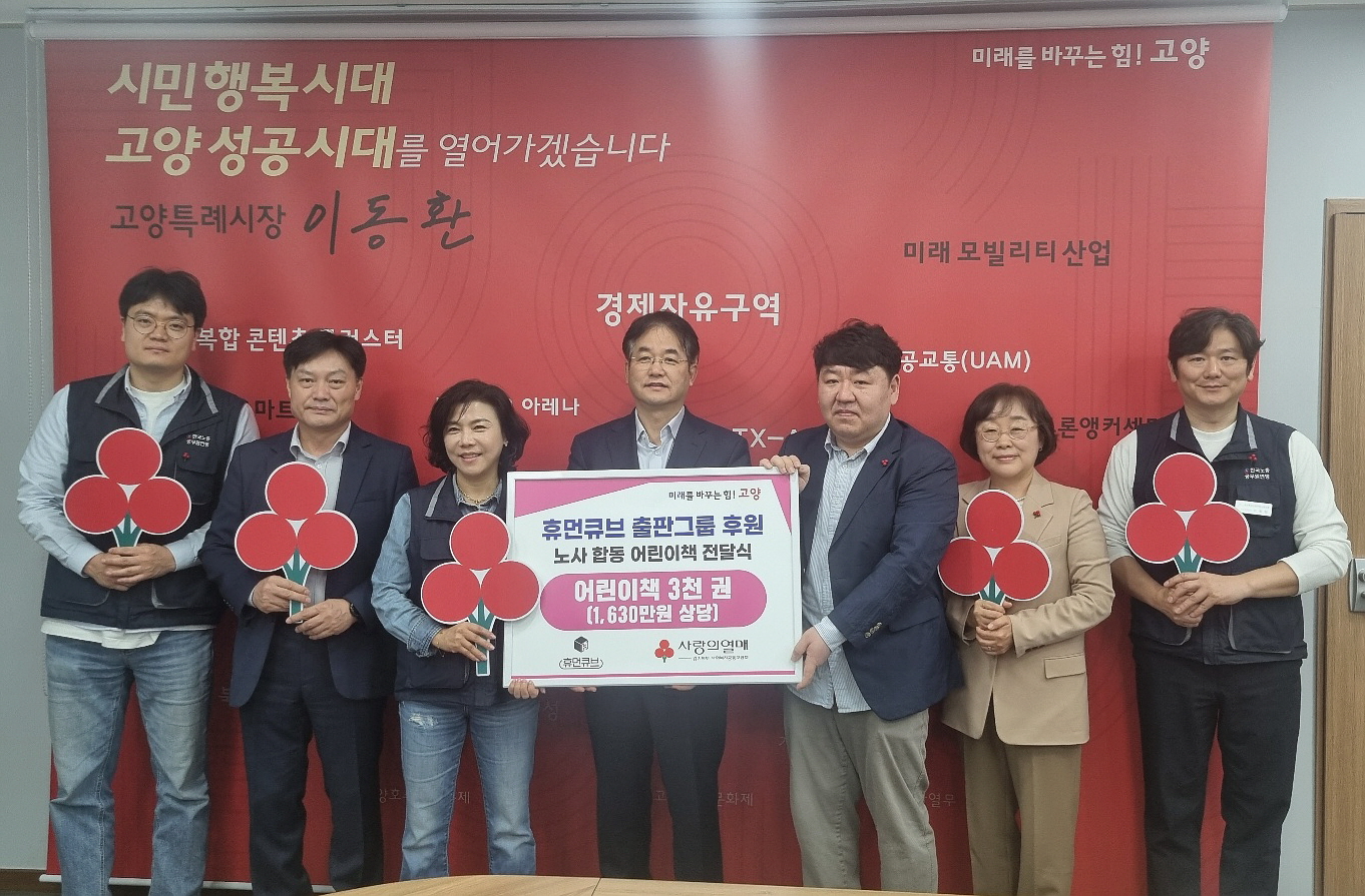 지난 12일 경기도 고양시 평화누리실에서 이동환 고양시장, 휴먼큐브(주) 윤해승 총괄본부장, 고양시공무원노조(위원장 장혜진)가 참석한 가운데 노사합동 도서 후원 전달식을 가졌다.