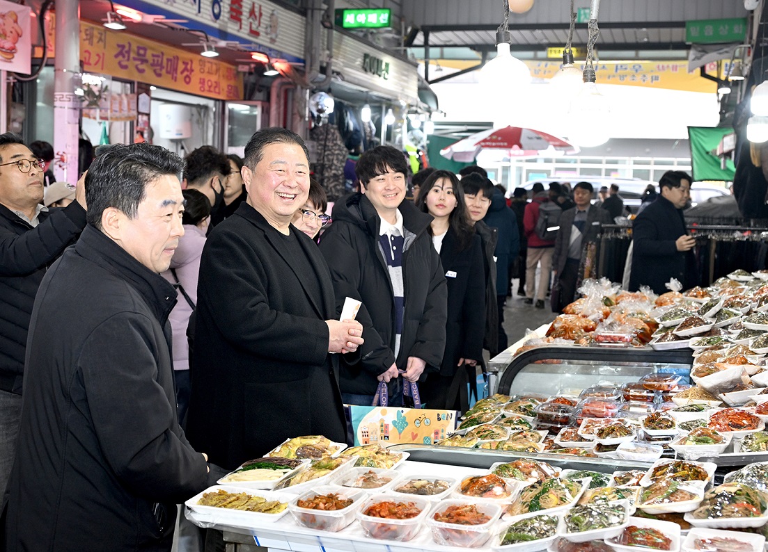 김 시장은 각 점포를 일일이 방문해 상인들과 인사를 나누고, 시민들과도 자연스럽게 대화를 나누며 현장의 목소리를 청취했다. 상인들은 명절 대목을 맞은 시장 분위기와 애로사항 등 다양한 이야기를 전했으며, 김 시장은 이를 경청하며 소통의 시간을 가졌다.